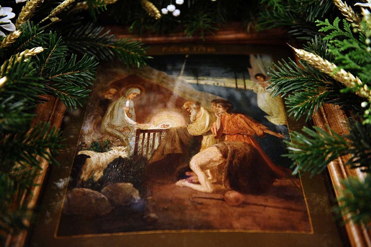 Ныне в Вифлееме, в убогих яслях для скота, совершилось на Земле величайшее Таинство – Таинство Боговоплощения, в котором природа Божественная неразрывно соединилась с природой человеческой. Святитель Василий Великий поясняет: «… Бог явился во плоти потому, что следовало этой проклятой плоти освятиться, немоществующей обрести силу, отчужденной от Бога сродниться с Ним, изгнанной из Рая взойти на Небо…».
