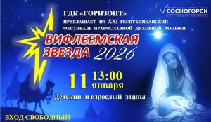 В этот же день владыка Филипп откроет ХХI Республиканский фестиваль православной духовной музыки "Вифлеемская звезда-2026", который состоится в два этапа 11 января с 13 часов.